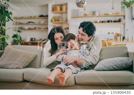 父母和孩子在客廳裡放鬆