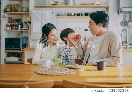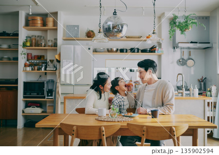 在用餐室用餐的家庭