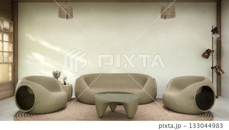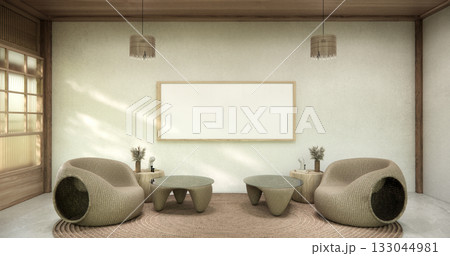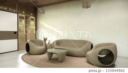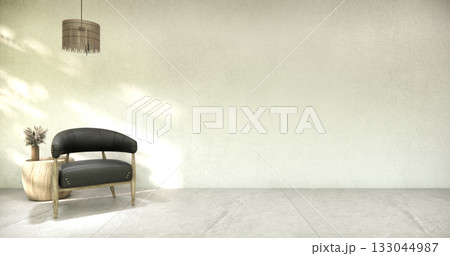 Circle shelf wall and decoration lamp on empty room japanese traditional.3D rendering