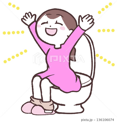 圖:一個快樂的女孩坐在馬桶上