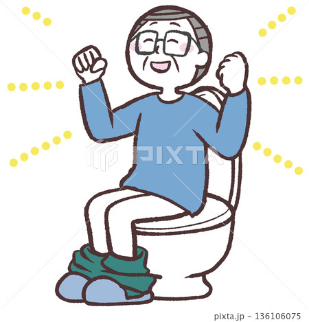 一位老年男子坐在馬桶上的插圖