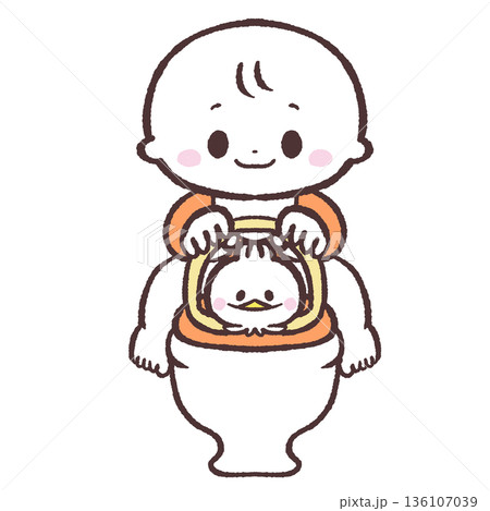 嬰兒坐在馬桶上的插圖