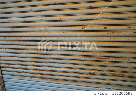 A closeup shot of automatic metal roller door used in factory, storage, garage, and industrial warehouse. The corrugated and foldable metal sheet offer space saving and provide urban and rustic feel