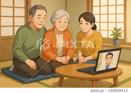 一家人在夏天的日式房間內共度美好時光的插圖(回家)