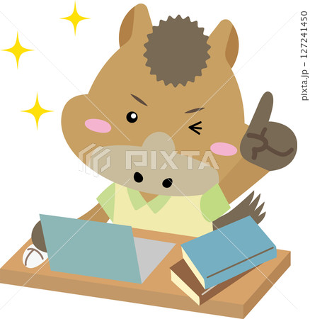 馬年人物在電腦上工作 - 馬年的工作和學習材料