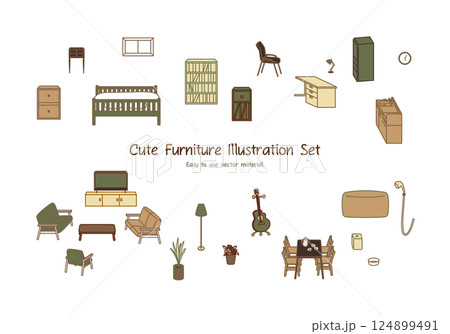簡潔可愛的家具向量插圖集