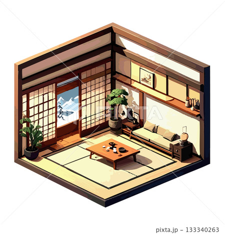 傳統日式客廳、榻榻米、日式室內插畫、圖標素材