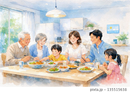 父母和孩子們圍坐在餐桌旁,享用著充滿愛的晚餐。