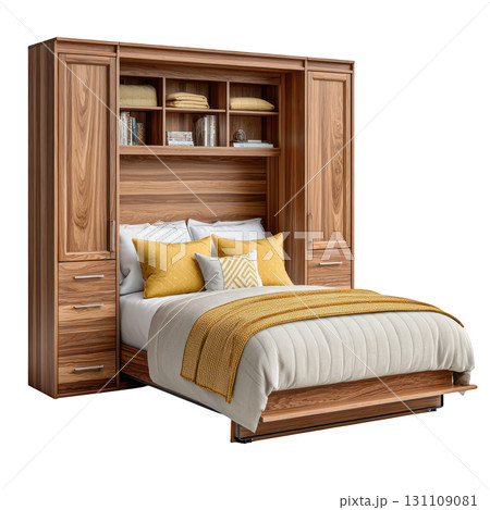 Stylish Wooden Murphy Bed with Storage Units for Space-Saving Bedroom Design and Cozy Comfort