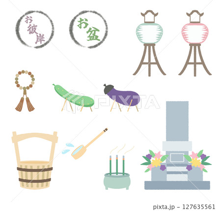 掃墓用具、祭品、鮮花 盂蘭盆節和秋分插畫集(活動8)