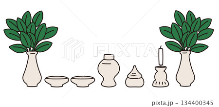 日本神道祭壇用具插圖 | 神道教、日式室內設計、宗教文化向量素材