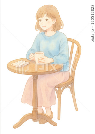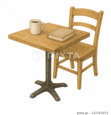 方形咖啡廳桌椅插畫/咖啡與書籍