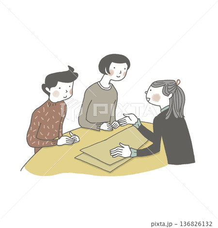 三個人圍著桌子聊天