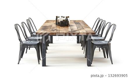 3D dining table with chairs isolated on white background