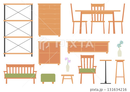 抽屜櫃、架子、抽屜櫃、梳妝台、衣櫃、櫥櫃的向量插圖