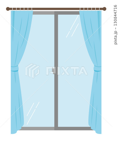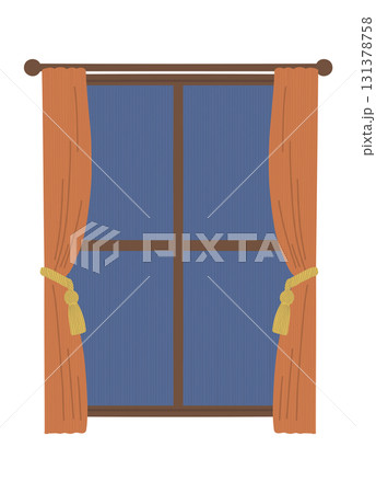 有窗簾的窗戶插畫素材