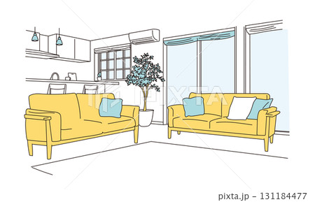 帶沙發的客廳的簡單插圖