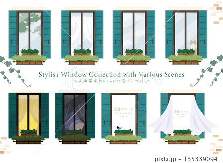 西式建築窗戶零件套裝:向量素材,依場景分類