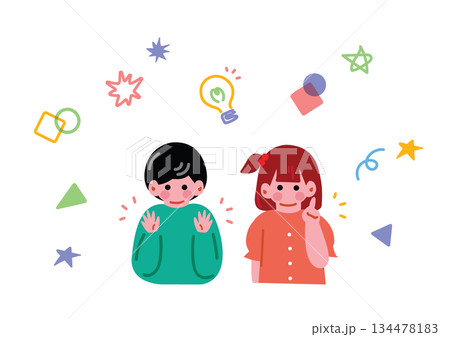 我想到了一個好主意,一個年輕男人和女人的上半身向量插圖素材_顏色