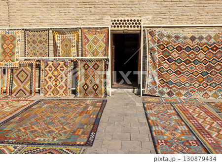 the carpet on sale outside Toqi Sarrofon which in Persian as money changers dome in Uzbekistan, Bukhara