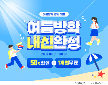 summer holidays vacation illustration. Korean Translation "go on a trip in the summer / summer special discount"