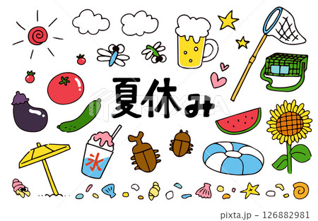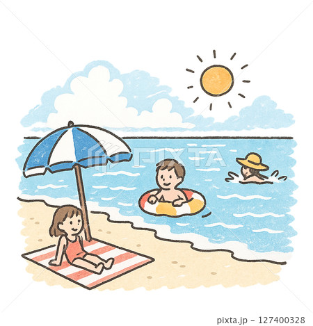 夏天,海水浴,暑假圖像集(手繪)顏色