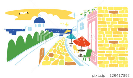 讓人想起假期的街道景觀插圖素材