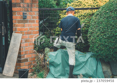 男人在花園裡吸煙