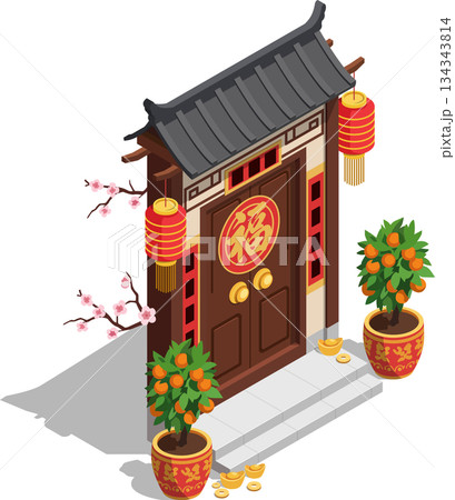Chinese New Year decorated house entrance