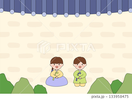 Vector illustration of a cute Korean children wearing hanbok.