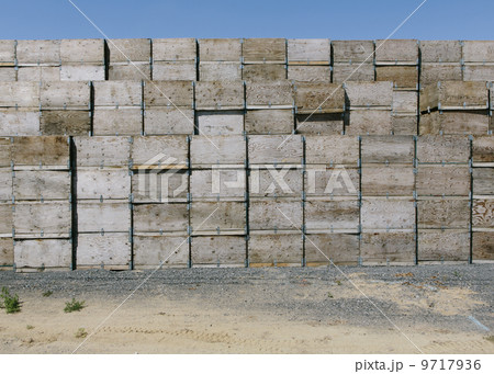 Large stack of fruit boxes for harvesting and storing apples, near Quincy