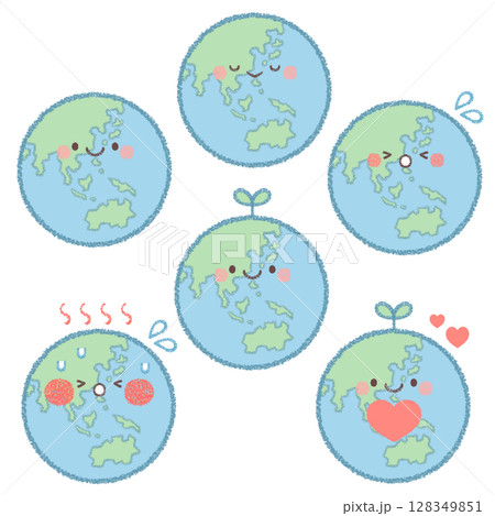 一組簡單變形的具有各種表情的地球角色的插圖。