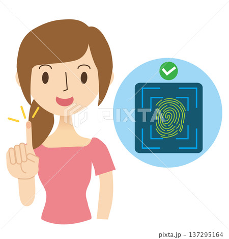 女性使用食指進行指紋認證,智慧型手機批准影像