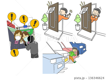 交通安全 <避開駕駛者、兒童、小學生、幼兒、行人天橋,穿越禁止通行的道路>