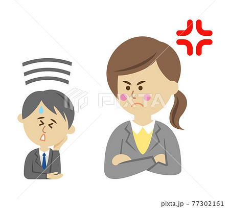 一位男性上班族對一位女性上班族生氣的插圖圖像