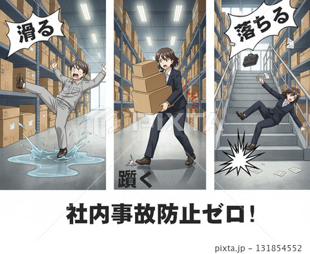 預防工作場所事故的插圖:注意防止跌倒、滑倒和絆倒