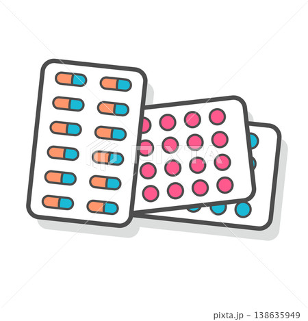 彩色藥丸膠囊的向量圖,帶有輪廓線。