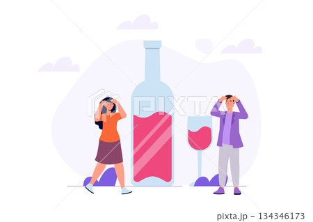 Harm of alcohol concept. Vector illustrations for banner, website, landing page, flyer.