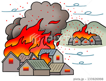 火災事故 - 房屋起火、強風、火花飛濺、火勢蔓延、傷亡