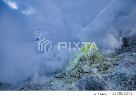 栃木縣那鬚町茶臼岳地獄冒出蒸汽