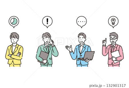 一名身穿西裝的男子的線條畫,構成插圖彩色集商人