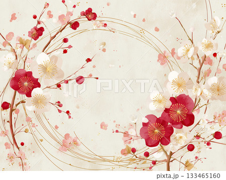 一款現代日式畫框,採用日式紙張紋理、梅花和水引圖案。