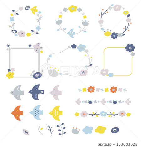 一組由柔和的彩色線條、邊框、裝飾線等組成的插圖,非常適合從秋季過渡到冬季