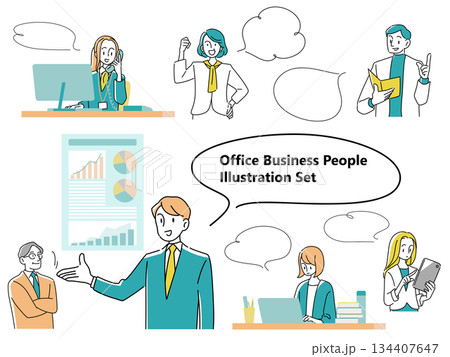 商業插畫素材集的講話泡泡和微笑的男女總裁_Color