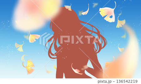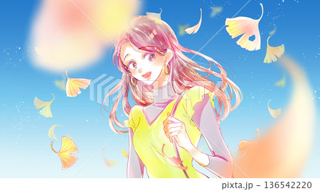 秋日銀杏藍天下,女子外出的剪影