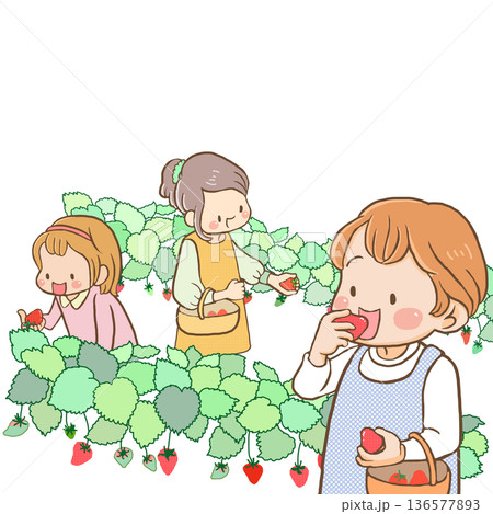 婦女們正在享受採摘草莓的樂趣