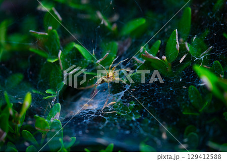 Spider web on green bushes in a natural forest