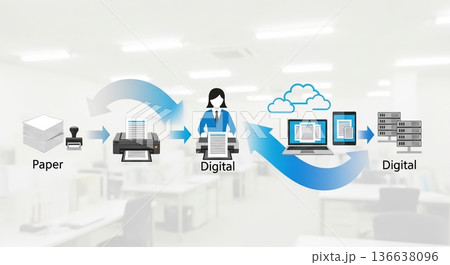 圖示展示了企業數位轉型與將紙本文件整合到雲端管理之間的關係