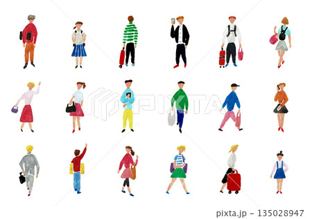 手繪水彩插圖,描繪了處於各種情境中的男女。