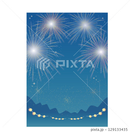 煙火匯演,夏日祭海報模板_淺藍色豎背景